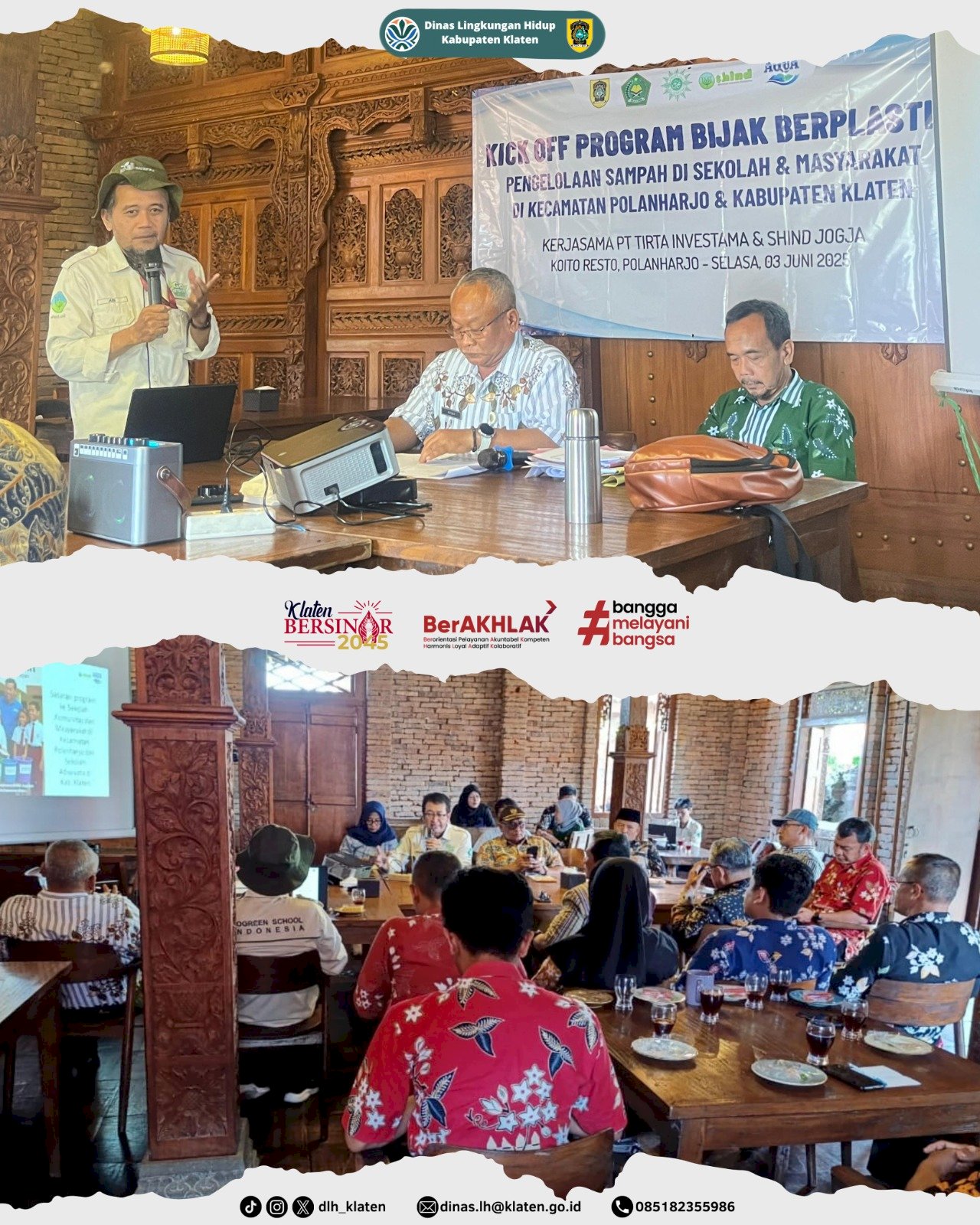 KLATEN - Dinas Lingkungan Hidup Kabupaten Klaten menggelar Kick Off Program Bijak Berplastik 2025 di Koito Resto & Cafe, Jimus, Kec. Polanharjo, Klaten (03/06).